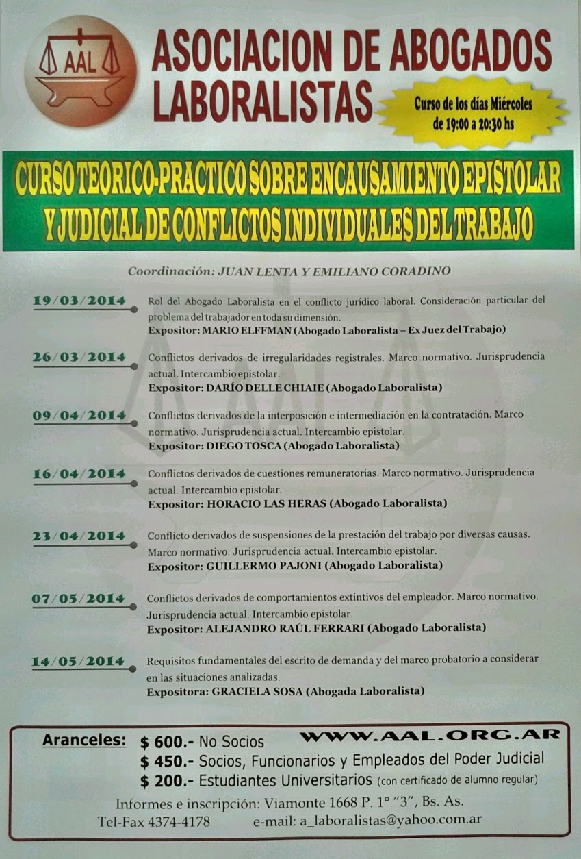 Tinkunaco 0337/14 - Re: [catorce_bis] AAL - Cursos MARZO 2014 - Inician: Miercoles 19/3 y Jueves 20/3 - Horarios: de 19 a 20:30hs