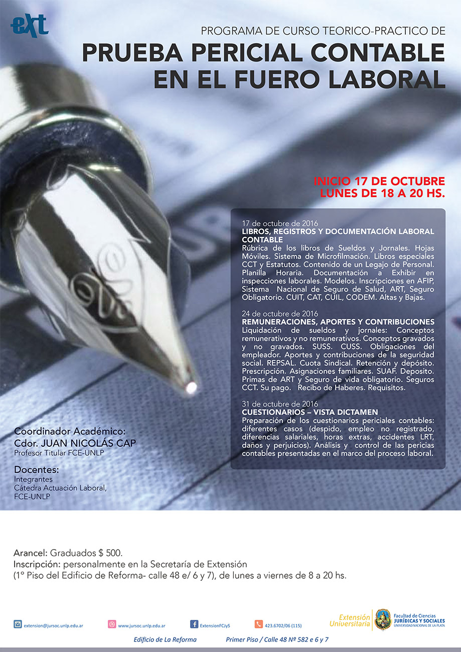 Tinkunaco 2.170/16 - Re: [catorce_bis] Curso teórico-práctico: "Prueba pericial contable en el fuero laboral"